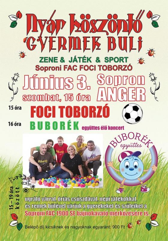 Június 3-án minden kedves családot és gyermeket vár Soporn városa a város és az ország minden pontjáról a Nyárköszöntő gyermekbulira, ahol zene, játék és sport lesz várja a lukrókat a Gyerek nap után!